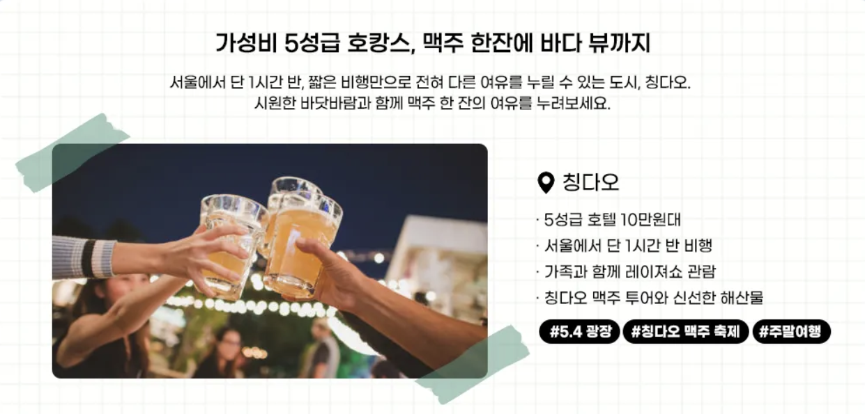 청도(칭다오)는 한국에서 1~2시간이면 닿는 가까운 항구 도시로 부모님과의 짧은 3박4일 효도여행 코스로 아주 적합합니다. 노산(崂山) 케이블카, 칭다오 맥주박물관, 바다 전망 카페거리는 젊은 세대와 함께 가도 좋은 가족 여행지예요.